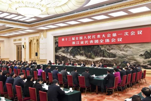 3月7日上午,十三届全国人大一次会议浙江代表团在人民大会堂西大厅继续审议政府工作报告,总理参加浙江代表团审议。