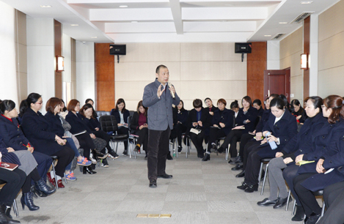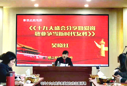 随后,中共十九大党代表吴晓红为大家带来了《十九大盛会分享暨爱岗敬业争当新时代女性》的课程。吴晓红是龙骧巴士7路公交车驾驶员,从业24年,安全行驶120多万公里,创造了无交通事故、无交通违法、无违章行车、无服务投诉的“四无”记录。作为一名基层的党员代表,她在讲课中向大家分享了参加党的十九大盛会的经历。同时,她以自身经历为例,鼓舞大家要“弘扬劳模精神、工匠精神”,把普通的工作当作一项伟大的事业去奋斗,在平凡的岗位上演绎出不平凡的人生,爱岗敬业争当新时代的卓越女性!