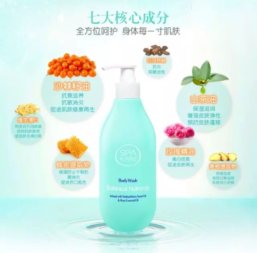 棘萃恒润沐浴露,富含沙棘籽油、山茶油、蜂蜜提取物、玫瑰精油、红没药醇、姜根提取物等多重成分,具有滋养、保湿、抗菌消炎等多重功效。