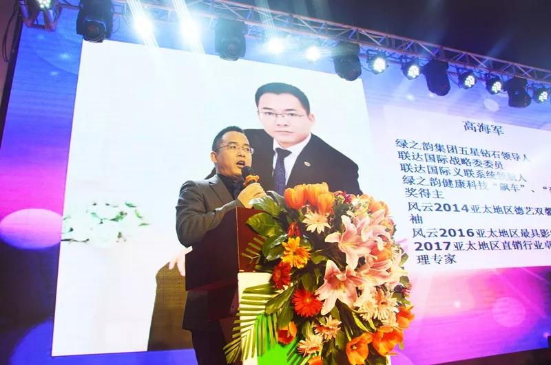 在现场齐唱《国歌》之后,绿之韵集团五星钻石领导人、联达国际战略委委员、联达国际义联系统领航人高海军先生登台,向莅临本次会议的嘉宾、领导及全体家人们表示热烈的欢迎和最衷心的感谢。