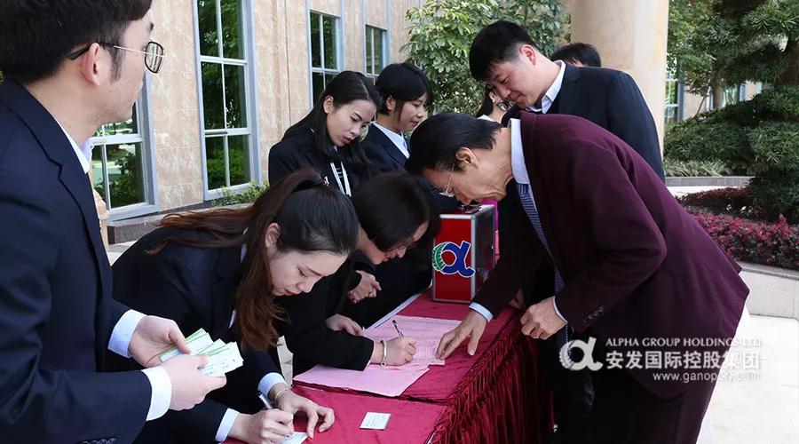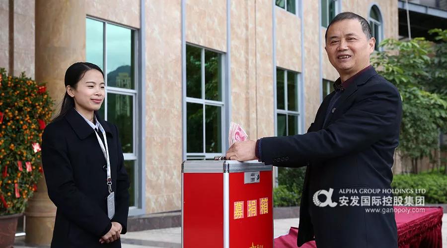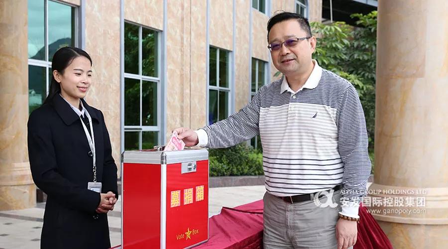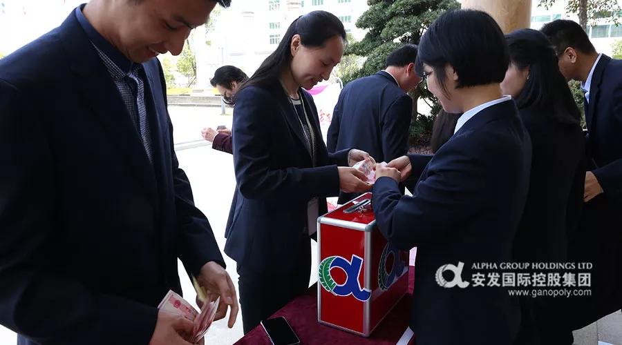 李总在做完分享后带头捐赠,随后全体员工以部门为单位顺序捐赠,捐赠现场温暖而有序。