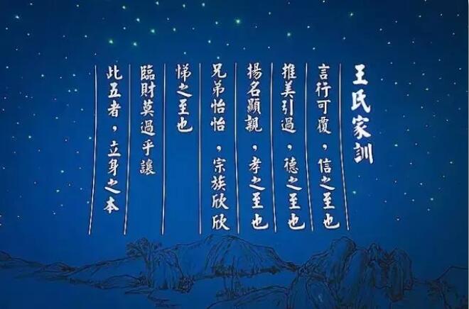 在琅琊王氏的千古家训中,首先提到的就是诚信。“夫言行可覆,信之至也。”以信为首,以行达信,开门施教,贵在待人。王氏家训把处理好人与人的关系放在首位,把“信”作为立身处世的第一要务,足以看到对诚信的重视。