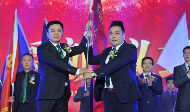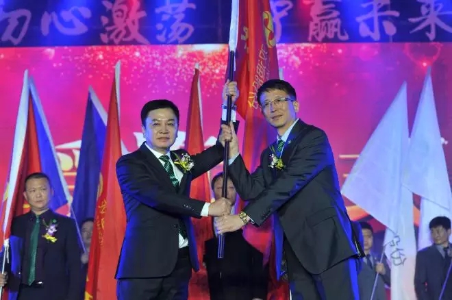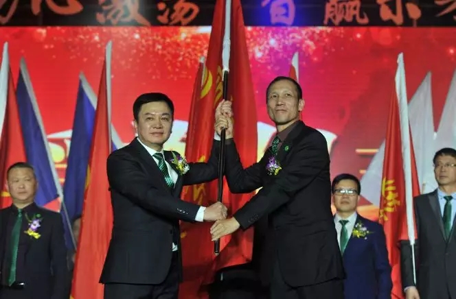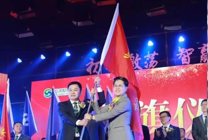 潘晓非董事长向双迪中国区授旗。“战鼓长登登,意气风发发”,中国区加油!