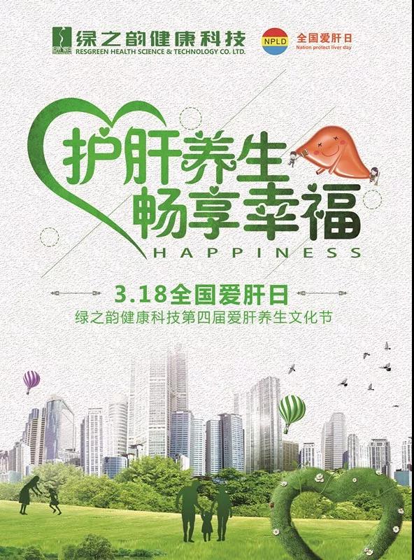 3月18日是“全国爱肝日”,2018年全国爱肝日主题为“爱肝护肝,珍惜生命”。为宣传“全国爱肝日”,增强广大群众对肝病的认知,绿之韵健康科技特持续举办“第四届爱肝养生文化节”。通过多项系列活动的开展,将绿之韵健康科技多年行之有效的爱肝护肝文化予以广泛传播,让公司护肝产品“甘宝吟”造福更多人。