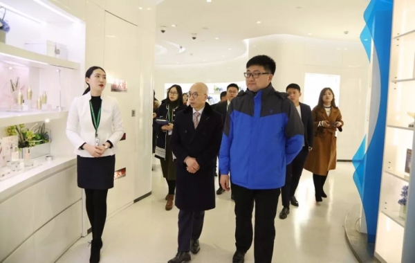 黑龙江逊克县副县长朱玉辉带领逊克县农业局局长陈越、逊克县宝山乡党委书记于月波等专程来到绿叶实地考察调研。绿叶科技集团董事长徐建成先生、总裁李仙霖先生陪同朱玉辉副县长一行首先来到绿叶科技集团(化妆品)研究中心与生产制造中心,逐一参观了化妆品、日用品和清洁用品混料车间、灌装车间、包装流水线和成品仓库等处,朱副县长对绿叶先进的现代化智能生产环境连声称赞。