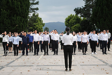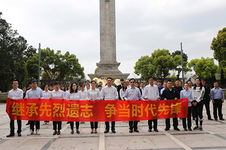 4月3日下午,在公司党委书记王刚的带领下,我们来到庄严肃穆的四明山烈士陵园,排着整齐的队伍有序地进入烈士陵园,党委副书记张敏进主持,宣布扫墓仪式正式开始。烈士陵园在苍松翠柏的映衬下显得格外庄严肃穆,我公司全体党员肃立在烈士纪念碑前,忆革命先烈,感恩他们用宝贵生命换来了祖国今天的繁荣昌盛。