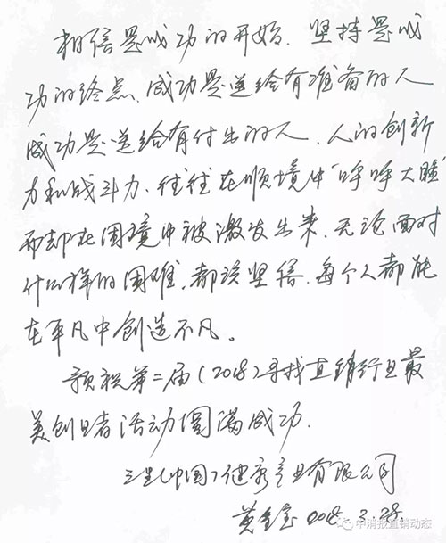 黄金宝先生为本次活动写的祝福语。