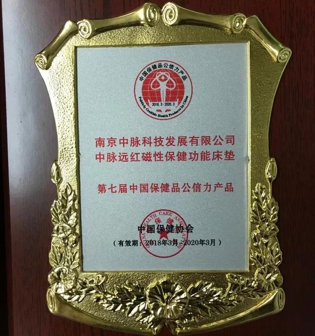 作为中国保健行业的知名企业,中脉远红磁性保健功能床垫、中脉远红镇痛护腰、中脉远红云舒枕3款产品荣获“中国保健品公信力产品”殊荣。这已是中脉旗下主要产品连续7届获得此项荣誉。