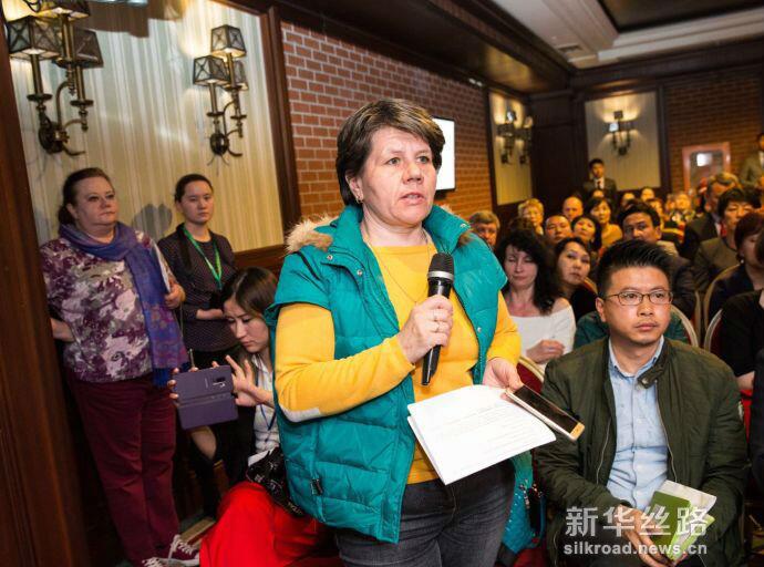 发布会现场挤满了关心天狮集团在哈萨克斯坦加大投资的记者,一家新闻媒体正在提问。(阿拉木图分社报道员 米赫耶夫摄)