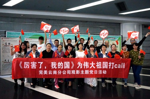 不忘初心跟党走,共圆伟大中国梦。4月11日,为了深入学习贯彻习近平新时代中国特色社会主义思想和党的十九大精神,完美云南分公司党支部开展主题党日活动,组织党员、入党积极分子以及分公司员工,集体观看了大型纪录影片《厉害了,我的国》。