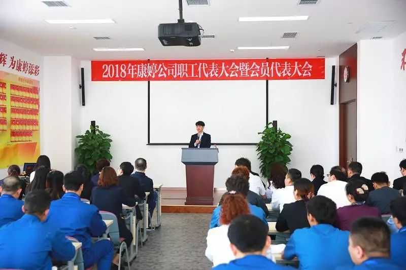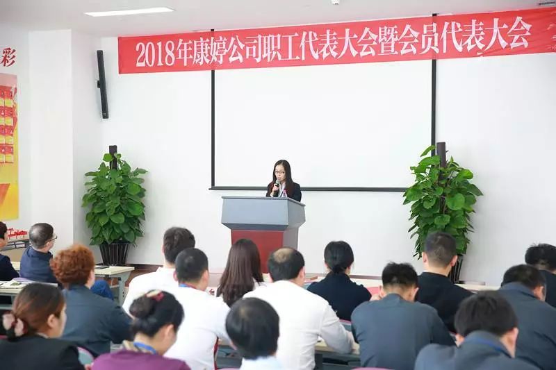 2018年4月19日,康婷公司2018年职工代表大会暨会员代表大会成功举办。有60余名职工(会员)代表参加本次会议,会议由工会主席屈洪伍主持。会上,康婷公司总裁杨琪、工会主席屈洪伍、人力资源中心部长郝晓艳分别向职工(会员)代表作了《2017年公司工作报告》《2018年公司工作计划》《2017年工会工作报告》《2018年工会工作计划》《2017年工资协商协议内容》《2018年工资协商协议内容》。全体职工(会员)代表对上述报告和计划进行了讨论和表决,一致通过了上述工作报告、计划和协议内容。