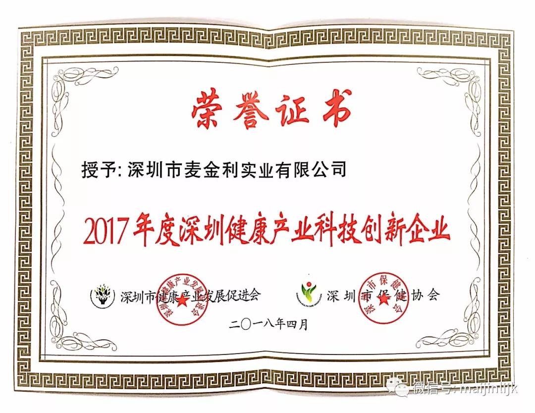 近日,2017年健康产业年会暨颁奖典礼在深圳举行,深圳市麦金利实业有限公司凭借多年的优秀创新能力、综合经营实力和高品质的服务,斩获“科技创新企业”“优秀企业” 两项大奖。
