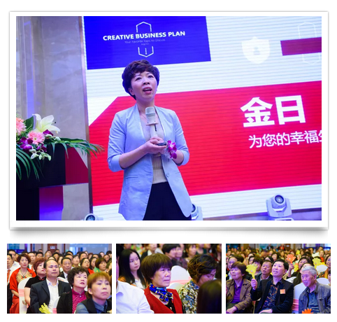 区域总监、优秀讲师邱华女士分享金日优质产品,展现一个个金日产品受益的感人故事,并宣布大会促销政策。