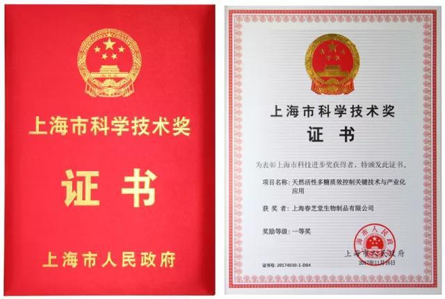 春芝堂优秀科技成果获2017年度上海市科学技术奖一等奖