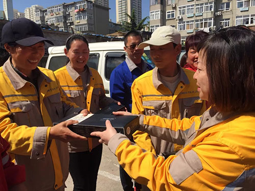 醇香咖啡送一线 长青向“城市美容师”送温暖