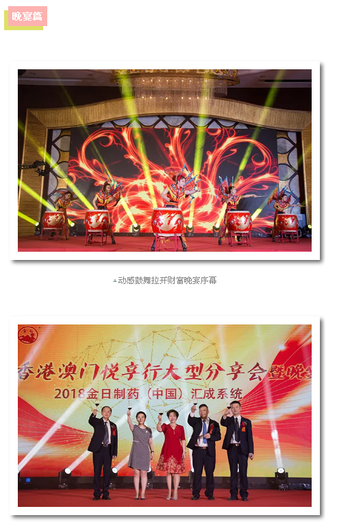 2018年4月25日,璀璨金日·从心出发——金日制药(中国)汇成系统港澳悦享行暨财富晚宴在“创客之城”盛大举行。