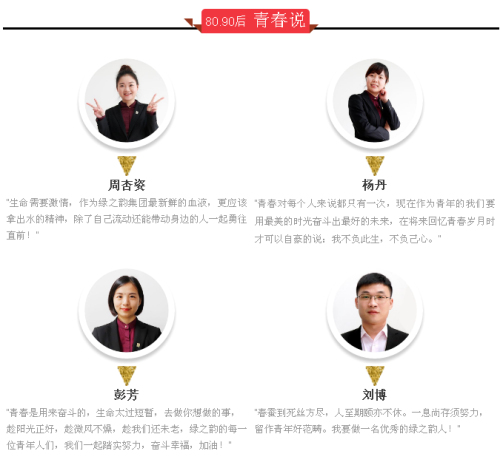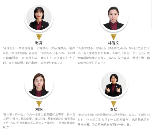 十五年风雨兼程,绿之韵深刻认识到青年员工这支新生力量在促进企业持续稳定健康发展中不可替代的重要作用。就企业而言,在70后逐渐升任高管统筹大局,80后接棒指挥令旗,90后已经冲锋在奋斗的第一线,成为公司一线岗位上不可或缺的新生力量。新鲜血液的注入,为绿之韵增添了无限的生机与活力,成为推动绿之韵蓬勃发展的生力军和重要力量。