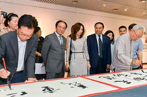 5月19日,“国珍杯·上海合作组织国家中文书法大赛”颁奖典礼暨优秀作品展在中国国际展览中心举行。中国外文局副局长王刚毅,上海合作组织副秘书长苏巴孔若耶娃,亚美尼亚驻华大使马纳萨良,哈萨克斯坦、塔吉克斯坦、白俄罗斯、阿塞拜疆驻华使馆官员,中国知名书法家罗平飞、赵学敏、官景辉等中外嘉宾参加了此次颁奖典礼。公司总经理黄永刚、副总经理董永明出席仪式。