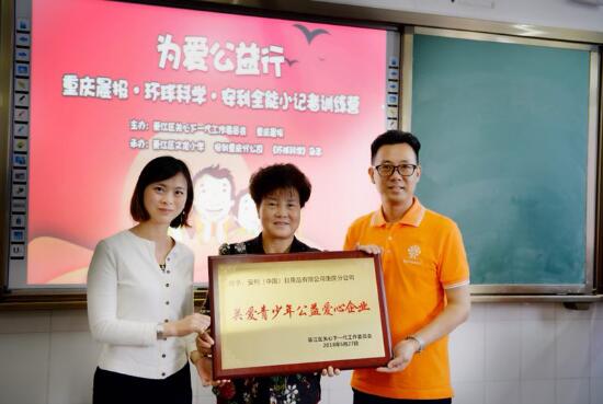 綦江区关工委及文龙小学向安利公司授予爱心企业牌
