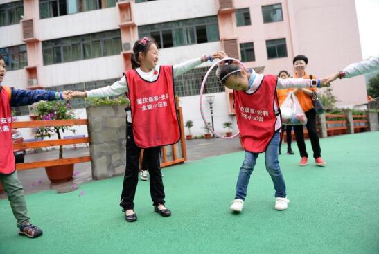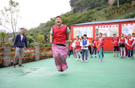 既然过儿童节,肯定少不了开心的游戏,袋鼠跳、呼啦圈以及现实版的农场寻宝,城乡的孩子们手牵手,共同完成一个个游戏任务,欢笑声回荡在校园。