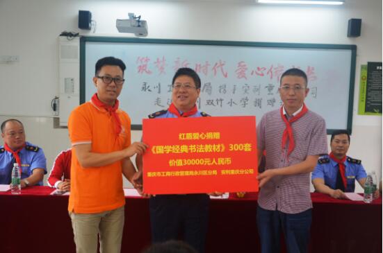 永川双竹小学大部分学生都是留守儿童,父母常年在外打工,永川工商分局在得知学校实际困难后,与安利公司共同为学校捐赠价值3万元的《国学经典书法教材》。同时,安利爱心志愿者蒋世春也为学校贫困学生捐赠5000元爱心助学金,为孩子们送上一份节日礼物。