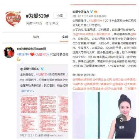 5月20日当天,新浪微博发起的#为爱520#话题累积阅读量突破一千万,截止目前,该话题阅读量已经超过1400万,话题讨论内容超过50万条。活动期间,公司与一汽集团、联合利华等倡议企业一道,大力推动“全民责任行 为爱520”活动的落地深植,通过社会大众和宣传媒介的广泛传播,公司进一步展示了负责任央属企业的良好形象。