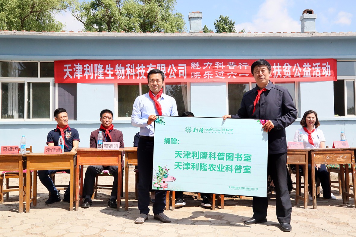 2018年5月30日上午,天津利隆生物科技有限公司与辽宁省扶贫协会组成扶贫小组,远赴辽宁省阜新市阜蒙县佛寺镇牛心屯村开展“魅力科普行·快乐过六一”扶贫公益活动。辽宁省扶贫协会会长陈玉莲,利隆公司党支部书记、总经理焦鹏及有关领导出席了此次活动。