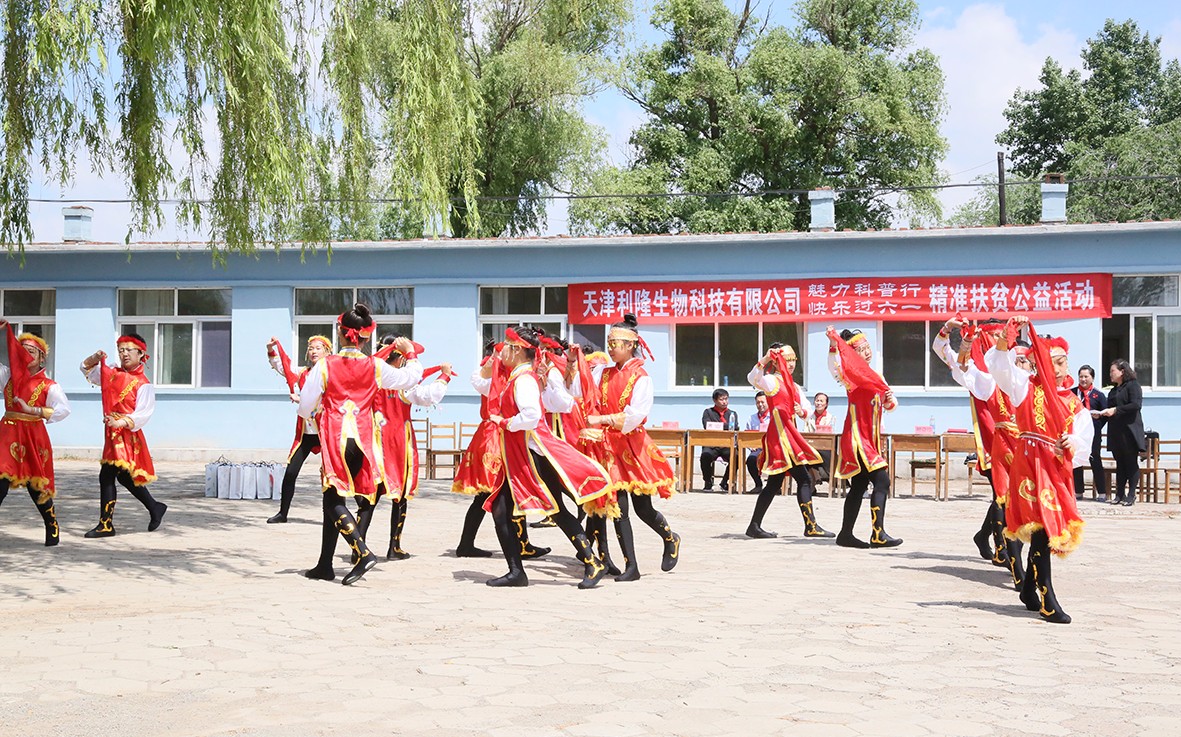 在这次活动中,利隆公司为阜新蒙古族自治县佛寺镇牛心屯村小学出资捐建农业科普室和图书室,还为学生们精心准备了各种节日礼物,校长马烽燎代表全校学生接受了捐赠。为表感谢,牛心屯小学的孩子们热情地为领导们戴上红领巾,并表演了精心编排的蒙古族舞蹈。