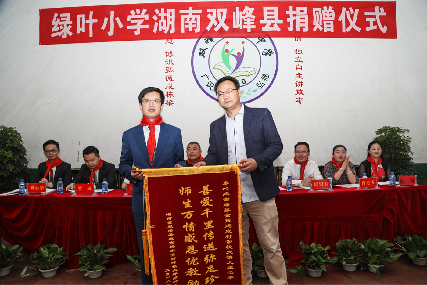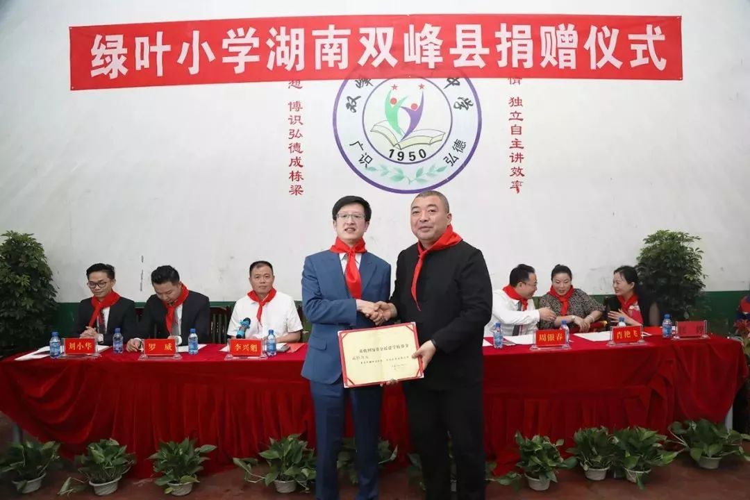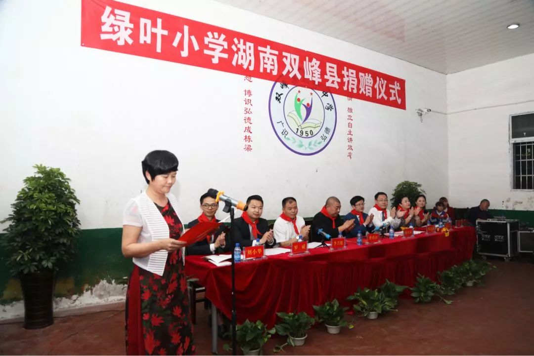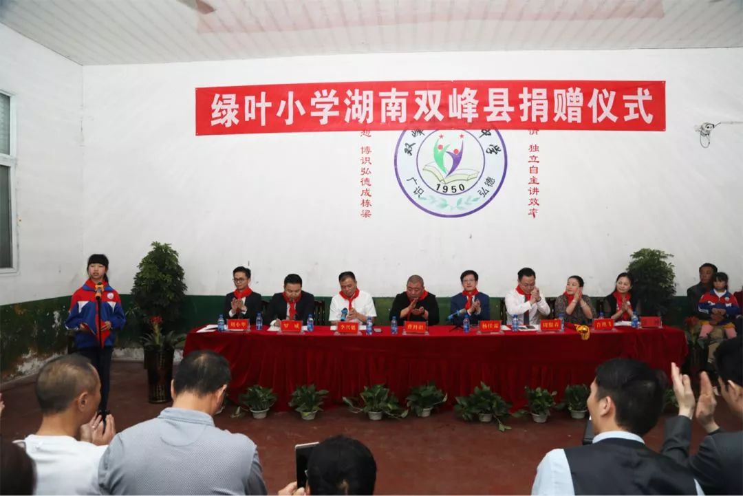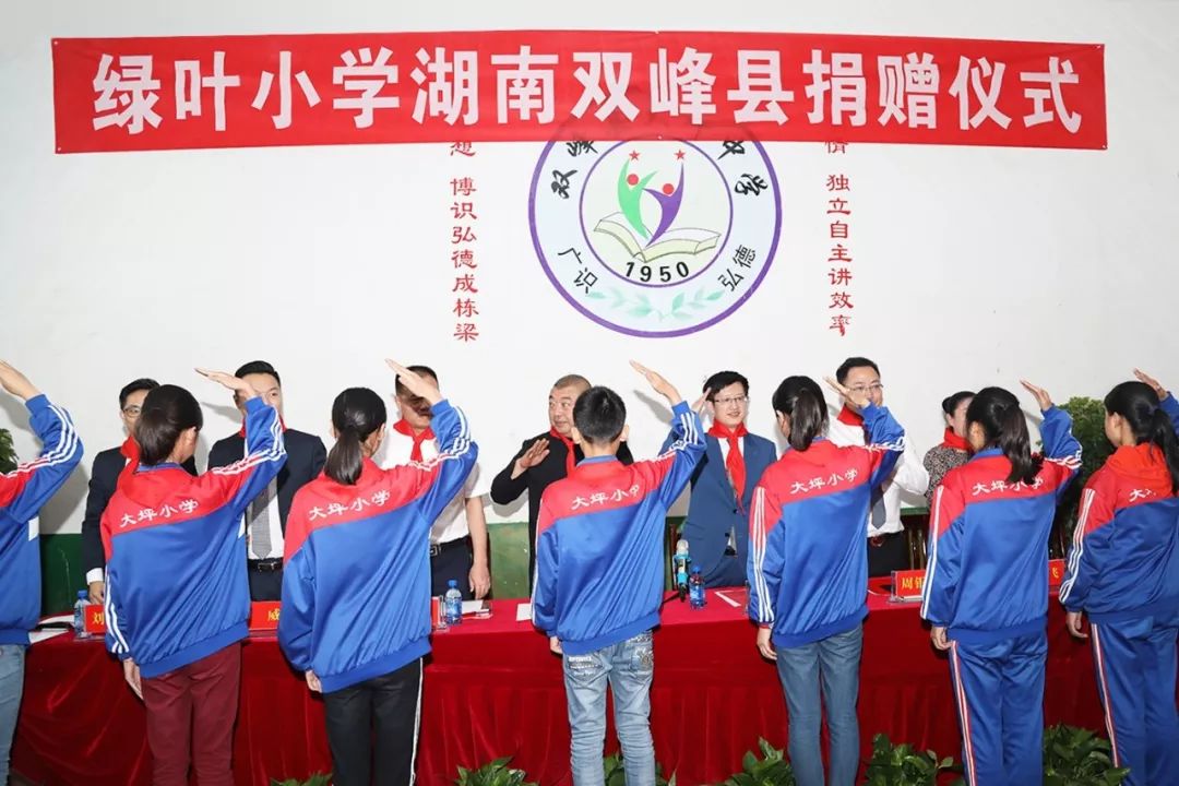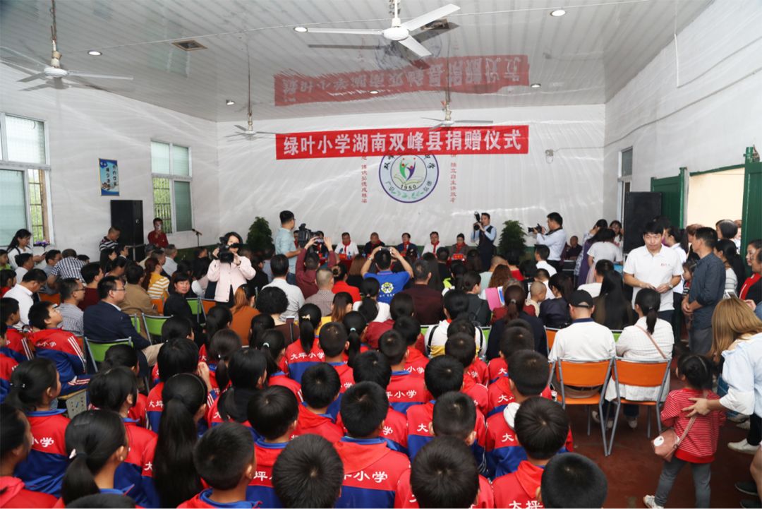 上午10时,双峰县委、县政府,双峰县教育局和苏州绿叶代表在青树坪镇大坪小学共同举行绿叶小学湖南双峰县捐赠仪式,苏州绿叶通过绿基金,向双峰县青树坪镇大坪绿叶小学捐资,专款用于学校建设。