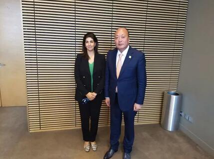 李金元董事长与摩洛哥投资发展局业务拓展主任Ayda Fathi女士合影