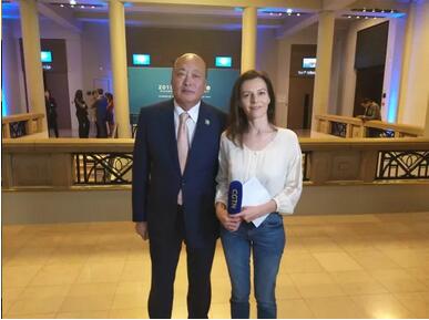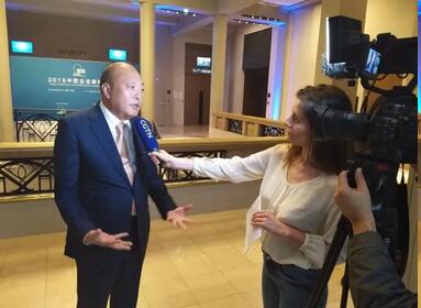 李金元董事长发言后立刻获安排接受媒体采访。中央电视台法语频道及中央电视台证券资讯频道对李金元进行深度访谈。李金元董事长受访时分享了天狮集团走出去的历程,如今走到第三次创业的发展路径以及未来的目标。