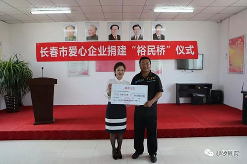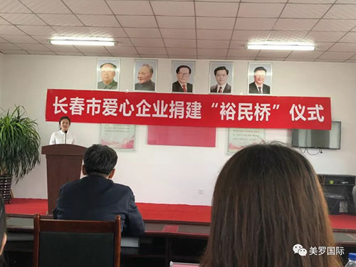 “裕民桥”公益项目是吉林省长春市精准扶贫工作重点民生工程,美罗国际吉林分公司此次捐款人民币10万元,用于“裕民桥”重建工程。
