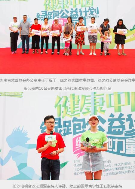 为爱奔跑,你的“5.20”是她们从贫困到幸福的距离。活动现场,湖南省慈善总会办公室主任丁绍干,绿之韵集团董事总裁、绿之韵公益基金会理事长劳嘉上台向10名受助贫困母亲代表颁发爱心卡及慰问金。据了解,此次公益绿跑活动以“绿跑·她力量”为主题,聚焦城镇低保“两癌”妇女,除了活动现场开展爱心募捐活动以外,绿之韵公益基金会还联合腾讯公益平台同步上线“帮贫困母亲远离两癌”爱心募捐公益项目,所筹得的全部善款将用于“两癌”贫困母亲救助公益项目。