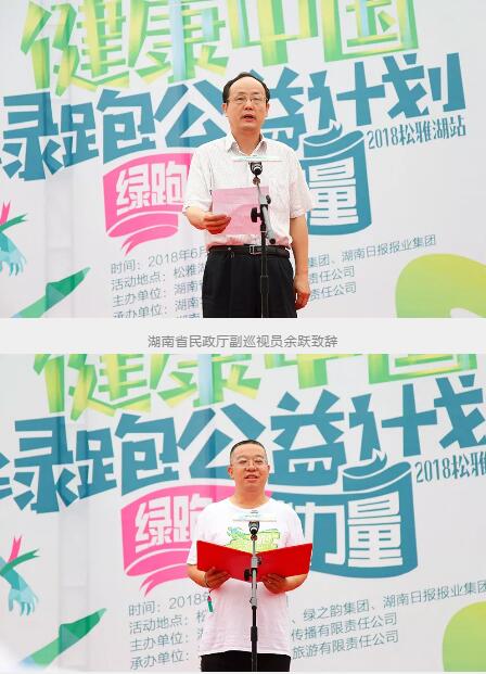湖南省民政厅副巡视员余跃上台致辞。他表示,“绿跑”不仅是一次全民健身活动,更是一次公益帮扶的生动实践。他呼吁更多的爱心人士、企业加入到公益绿跑的行列,共同关爱贫困母亲的身体健康,为建设富饶美丽幸福新湖南贡献力量。