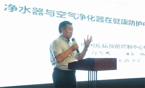 现今水、空气的污染无处不在,对人的危害更是无孔不入,中国疾病预防控制中心、环境与健康相关产品安全所副所长,医学博士、二级研究员、博士生导师白雪涛博士带来了净水机与空气净化器在健康防护中的重要作用讲解。他通过讲解目前我国水和空气污染的现状,以及受污染的水和空气对人体所带来的危害,让参会者了解到了健康的水和空气对人的重要性。他还着重分析了净水机和空气净化器在净化水和空气中的重要性。白博士提醒与会人员,净水机和净化器一定要定期更换耗材,避免二次污染。