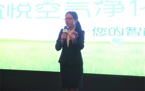 完美公司业务中心推广部杨俊雅为大家带来了宜悦空气净化器的专业讲解。她深刻剖析了空气污染危害的严重性,以及如何预防、如何呼吸到健康安全的空气,同时就如何正确地选择空气净化器,对宜悦空气净化器进行了详细的讲解。