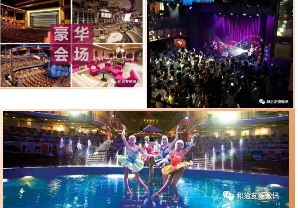 邮轮上的剧场、餐厅、会议室都绝对能够给你一个高规格的奢华体验!无论是演出表演、娱乐设施、豪华客房,还是美食美景,无不面面俱到。重要的是:吃、喝、玩、乐、购,都不用您去操心,贴心周到的安排,完全没有时间去无聊,整个旅程堪称完美!