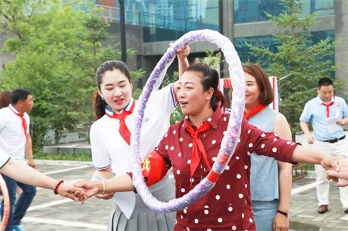 广播体操、踢毽子、薪火相传、送鸡毛信、神笔马良、财源滚滚,随着每个游戏的开展,大家集思广益攻破个个难关,在游戏中开心地谈笑着、打闹着。