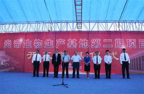 2018年6月29日,炎帝生物生产基地第二期项目开工奠基仪式在株洲隆重举行。株洲市委常委、常务副市长何剑波、天元区委书记周建光、株洲市政协副主席周雪辉、天元区委副书记、区人民政府区长董巍、株洲高新区管委会主任朱振湘、炎帝生物董事长兼湖南弘毅致诚投资有限公司董事长黄佳林、上海三湘副总裁厉农帆、炎帝监事会主席陈牧、炎帝生物副总裁兼湖南弘毅致诚投资有限公司总经理兼常德炎帝生物科技有限公司董事长李中钦、公司高管、总部员工以及政府领导、社会友人出席了活动。