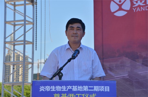 天元区委副书记、区人民政府区长董巍代表政府部门对项目开工表示热烈的祝贺,他指出:“炎帝生产基地二期工程,是经济社会发展的重要支撑,是拉动发展的强力引擎,项目的建设标志着炎帝生物迈向了再次创业的新步伐,对推企业转型升级,对提升市场竞争力起到良好的推进作用,项目的建设也为天元区生物医药及健康食品产业的发注入的新的活力和动力,对推动天元区发展具有重大意义,希望全区各部门以项目为重,以发展为先,主动做好服务工作,全力推进项目实施,期待炎帝做大做强为社会发展做出更多贡献。”