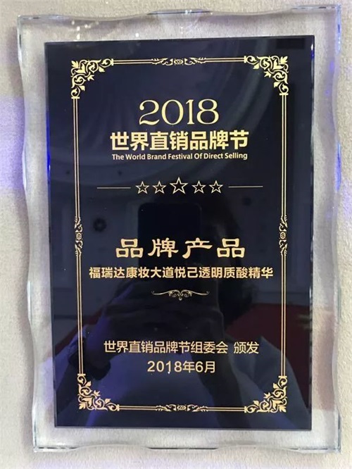 福瑞达康妆大道悦己透明质酸精华荣膺2018世界直销品牌节“品牌产品”奖