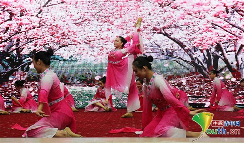 湖北文理学院附属中学的同学们表演舞蹈《灼灼芳华》