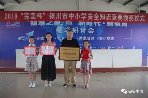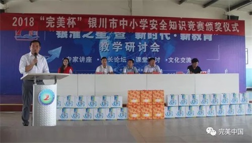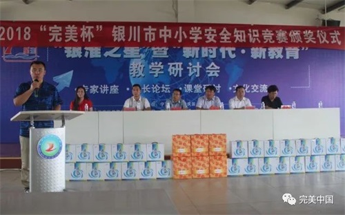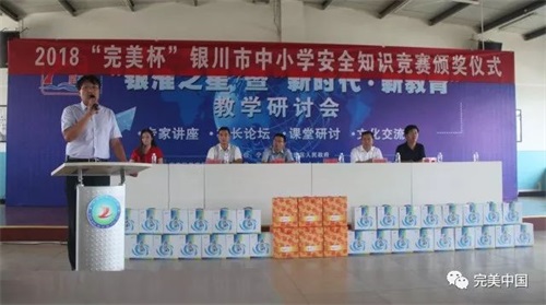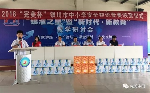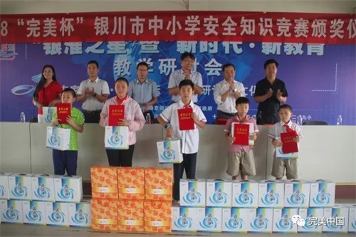 7月2日下午,由银川市教育局、银川市新闻传媒集团、完美(中国)有限公司宁夏分公司联合举办的2018“完美杯”银川市中小学生安全知识竞赛颁奖仪式圆满举行。