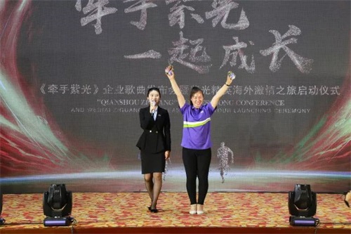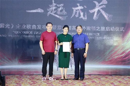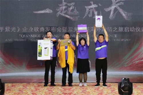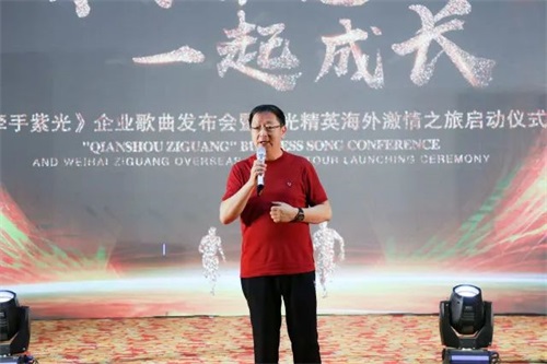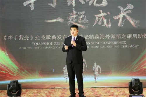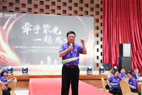 音乐理念契合企业文化,团队精神融入内在思想。戚主席从与紫光相遇、相识、相知的缘分说起,详细阐述《牵手紫光》的创作灵感,并十分肯定威海紫光从事大健康产业的初心与大爱,赞扬紫光家人团结一心、砥砺奋进的精神力量。祝愿紫光走向更加美好的明天!