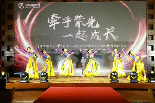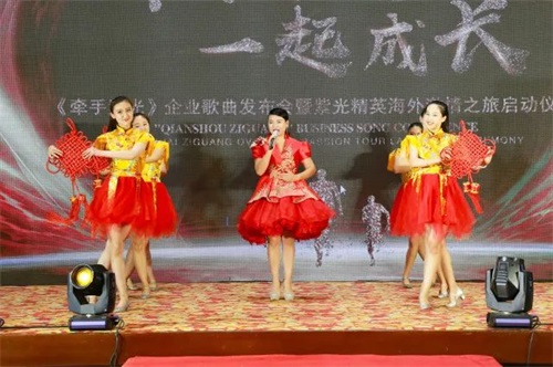 伴随着喜庆欢快的歌伴舞《开门红》,“牵手紫光,一起成长——《牵手紫光》发布会暨精英海外激情之旅启动仪式”晚宴正式开启。由威海紫光文宣部与紫光家人们带来精彩的文艺表演,共同演绎戚建波老师的经典歌曲,向经典致敬。