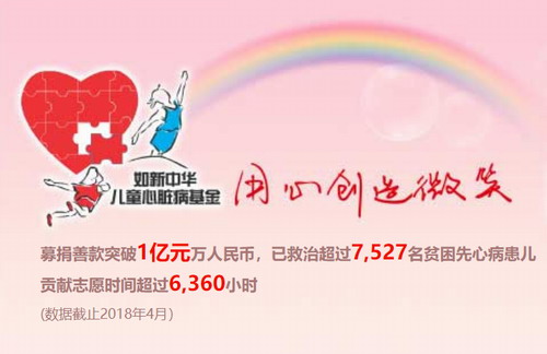 如新在2008年成立NU SKIN 如新中华儿童心脏病基金,致力于拯救先天心脏病儿童及其家庭,现在已发展成为大中华区完善的先天性心脏病救助项目。