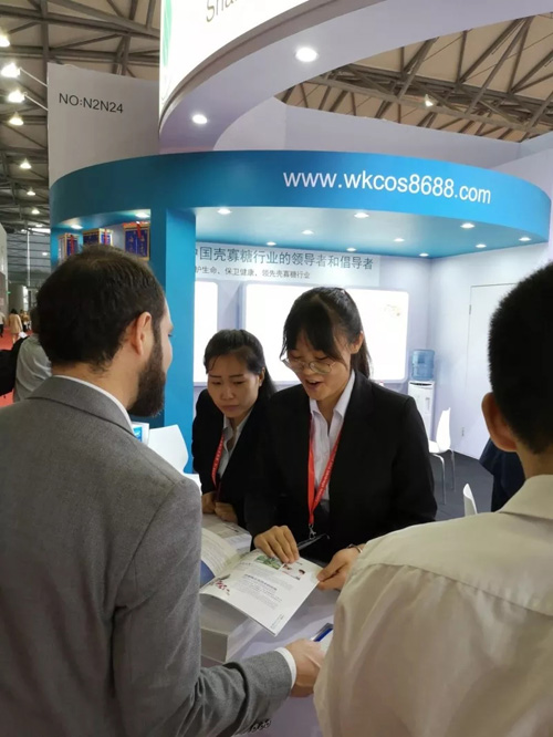 此次展会,山东卫康生物医药科技有限公司生产的壳寡糖备受瞩目。壳寡糖是甲壳素(几丁质)类物质的高端衍生物,是含有氨基的低聚糖。其化学结构与植物纤维非常相似,因此被称为可食性动物纤维素。它是天然多糖中唯一带正电荷的小分子物质,并具有稳定的三维结构。它具有特殊的生理活性,是一种高效的功能性食品原料,也是比较完美的第四代保健品原料(机能性健康品)。其诸多保健功能引起了观展商以及参展企业的普遍关注,人们对这种来自海洋的食品原料产生了极大的兴趣。在为期3天的布展过程中,前来展位咨询与了解的参展人员络绎不绝。