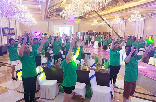 从活动报名启动到养生班的成功举行,绿韵养生班收到了来自市场家人们的强烈关注与火爆参与。家人们怀揣着一颗对健康、快乐、幸福的初心聚集在一起,共同度过了愉快的四天。在养生班期间,家人们跟随主持人的引导下,暂时的抛开了自己的身份,全身心的投入到快乐运动、健康减除油脂的体验中。