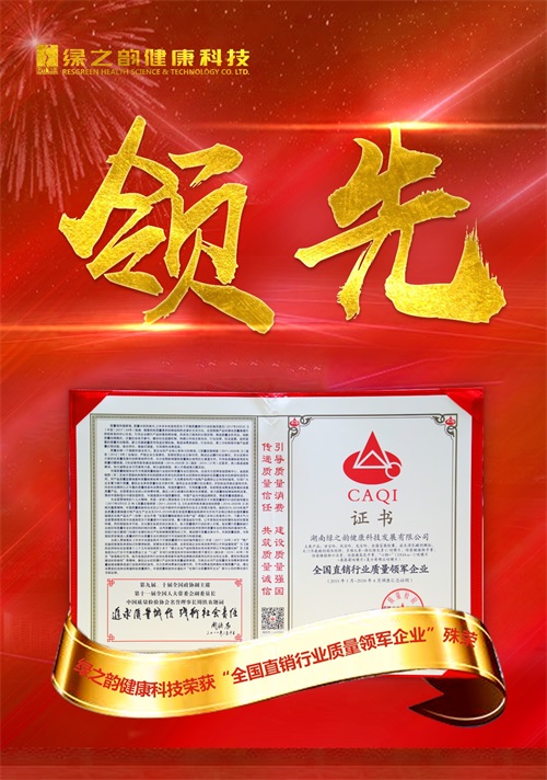 日前,经过中国质量检验协会对绿之韵健康科技(2015年1月——2018年4月)的产品和服务质量进行严格调查、审核、汇总证明之后,不负众望,荣获“全国直销行业质量领军企业”殊荣。成为官方认证的直销行业质量“领头羊”!再度彰显绿之韵品牌的综合硬实力!