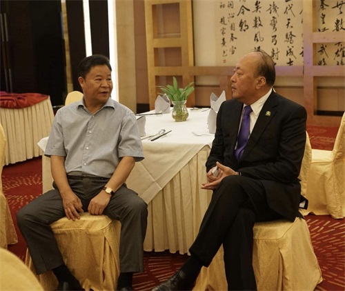 李金元董事长与吕新华会长亲切交谈(吕新华曾任外交部副部长、全国政协外事委员会副主任)